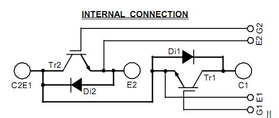 CM600YE2N-12F absolute maximum ratings: (1)Junction Temperature Tj: -40 to 150 ℃; (2)Storage Temperature Tstg: -40 to 125 ℃; (3)Collector-Emitter Voltage (G-E Short) VCES: 600 Volts; (4)Gate-Emitter Voltage (C-E Short) VGES: ±20 Volts; (5)Collector Current DC (TC = 25℃) IC: 600 Amperes; (6)Peak Collector Current (Pulse)*2 ICM: 1200 Amperes; (7)Emitter Current (TC = 25℃) IE*1: 600 Amperes; (8)Peak Emitter Current (Pulse)*2 IEM*1: 1200 Amperes; (9)Maximum Collector Dissipation (TC = 25℃) PC*3: 1860 Watts; (10)Mounting Torque, Main Terminals (C1, AK, E2), M8 Screw (Max.): 95 in-lb; (11)Mounting Torque, Mounting Holes, M5 Screw (Max.): 30 in-lb; (12)Mounting Torque, C2, E1 Terminals, M4 Screw (Max.): 15 in-lb; (13)Weight (Typical): 740 Grams; (14)Isolation Voltage (Main Terminal to Baseplate, AC 1 min.) Viso: 2500 Vrms.